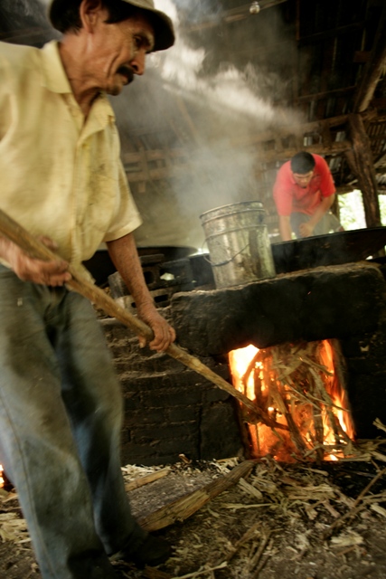 Stoking the fire to heat the sugar